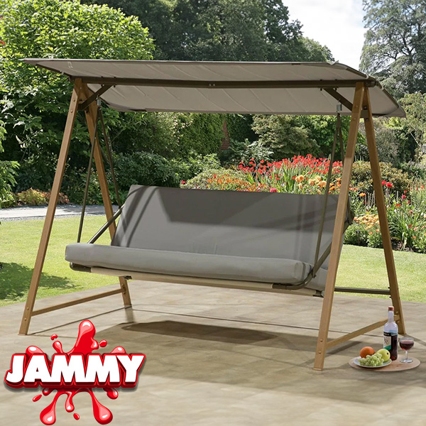 The Bordeaux 3 Seat Swinging Hammock in Grey with Wooden Look Strong Metal frame.